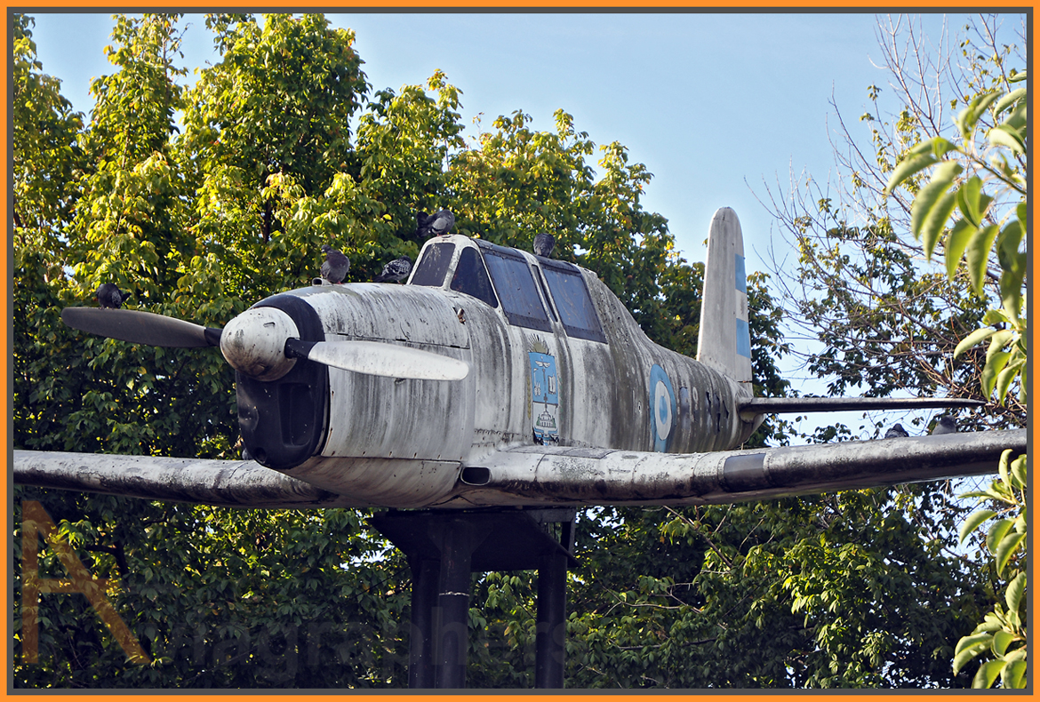 The locally designed IA-58 Pucara gained fame during the Malvinas conflict. The only single seater developed, this IA-58C, is displayed near the gate of Rio Cuarto air base.