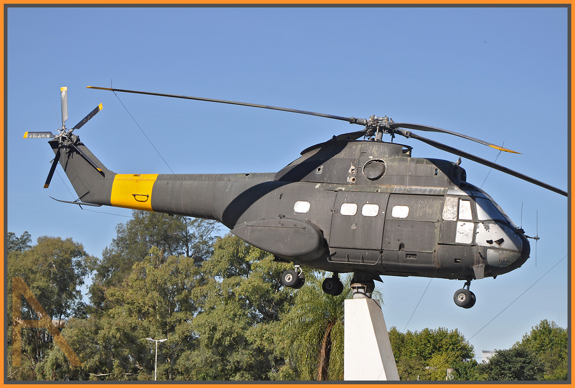 Puma helicopters were intensively used by both sides during the Malvinas conflict. The Buenos Aires suburb of Malvinas Argentinas is where it has been put up for display alongside a OV-1D Mohawk.
